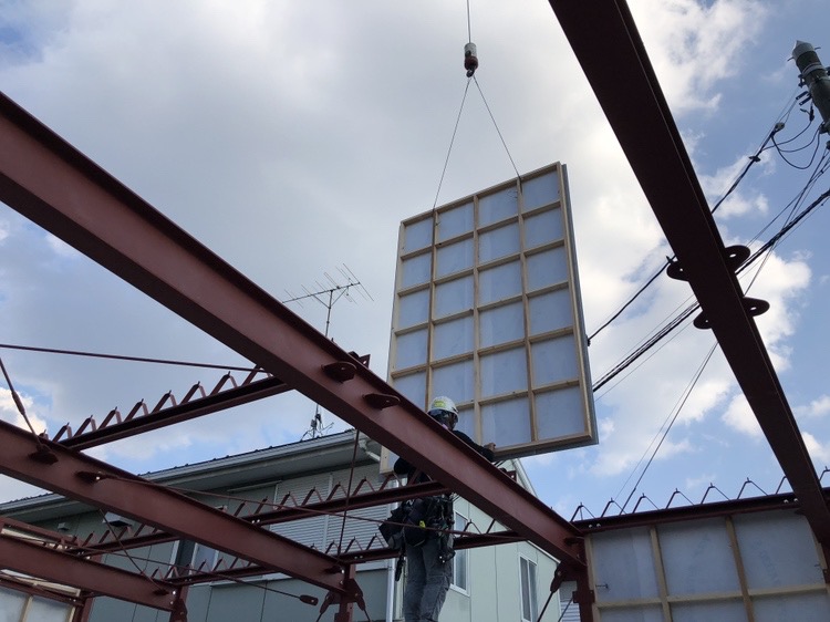 プレハブ建築は構造部材の柱や梁、壁パネルなどを予め工場で生産して、現場ではそれらの部品を組み立てる工法です。